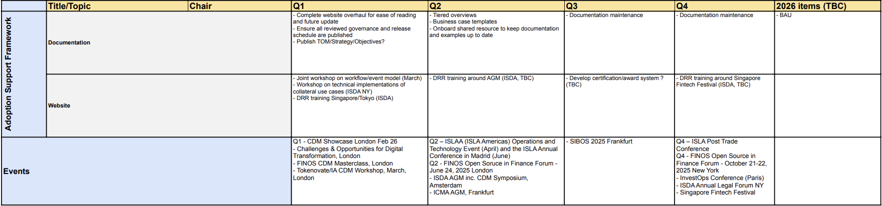- The latest CDM roadmap of expected contributions sponsored by the presently participating trade associations: ICMA, ISDA and ISLA can be found under Roadmap.md .