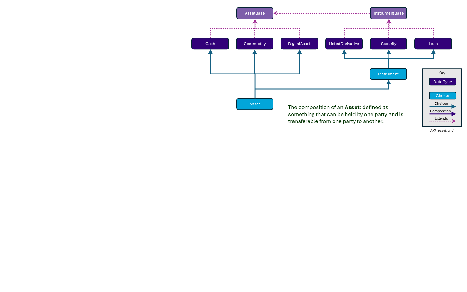CommodityProductDefinition. - DigitalAsset: An Asset that exists only in digital form, eg Bitcoin or Ethereum; excludes the digital representation of other Assets.